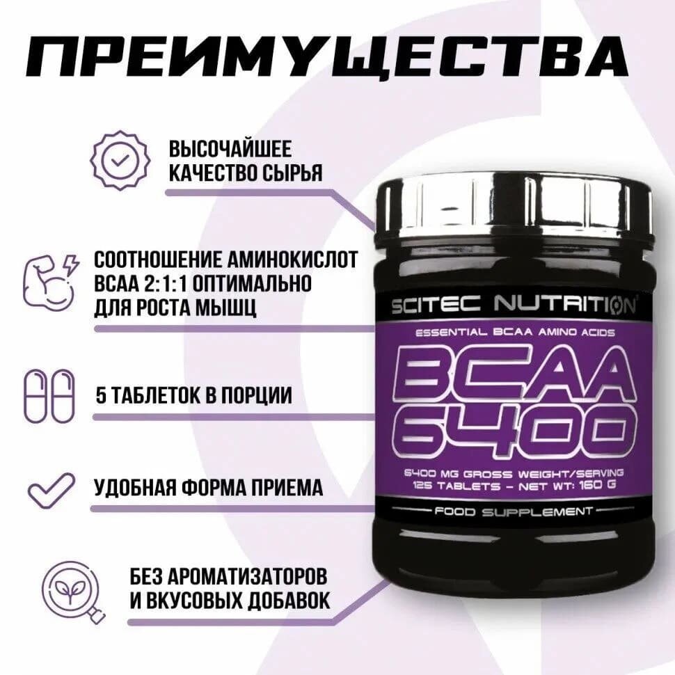 Ниже Вы можете прочитать отзывы на Scitec Nutrition BCAA 6400 125 шт., ознакомится с подробными характеристиками, посмотреть интересные обзоры и фотографии на Scitec Nutrition BCAA 6400 125 шт..