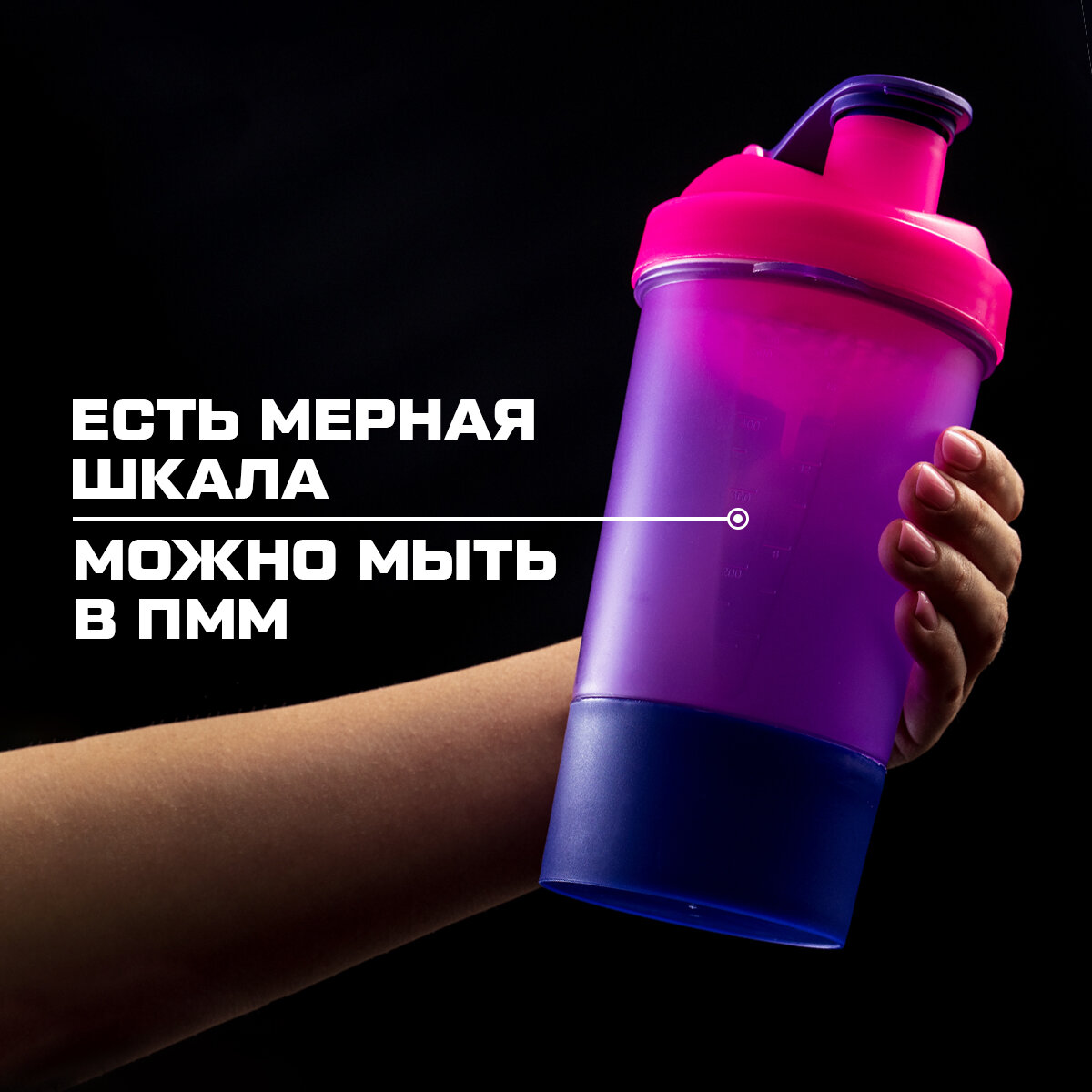 Шейкер спортивный с чашей под протеин, чёрный, 500 мл