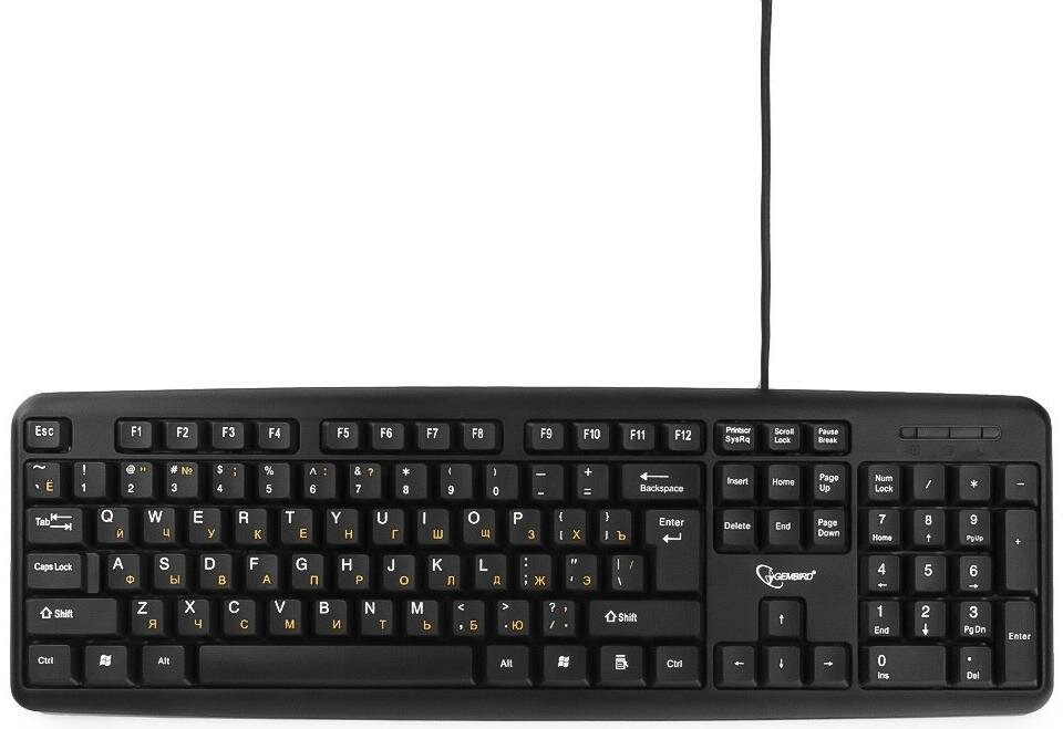 Клавиатура Gembird KB-8320U-Ru_Lat-BL, черная, 104кл., кн. Ru/Lat, символ рубля, USB