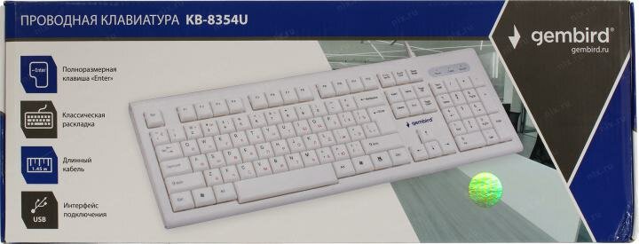 Клавиатура Gembird USB, белый, 104 клавиши, RTL