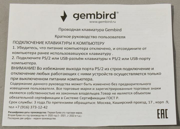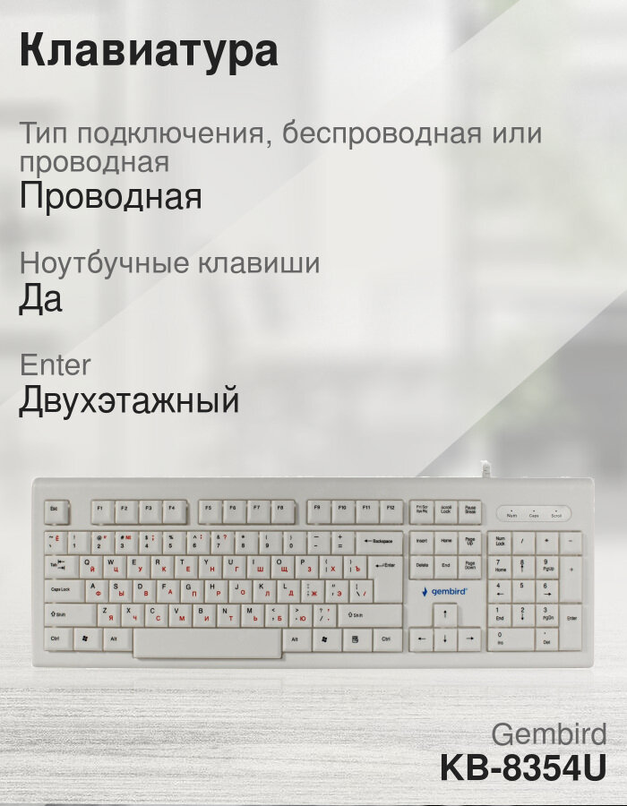 СохранитьПроводная клавиатура Gembird KB-8354U, USB интересное: