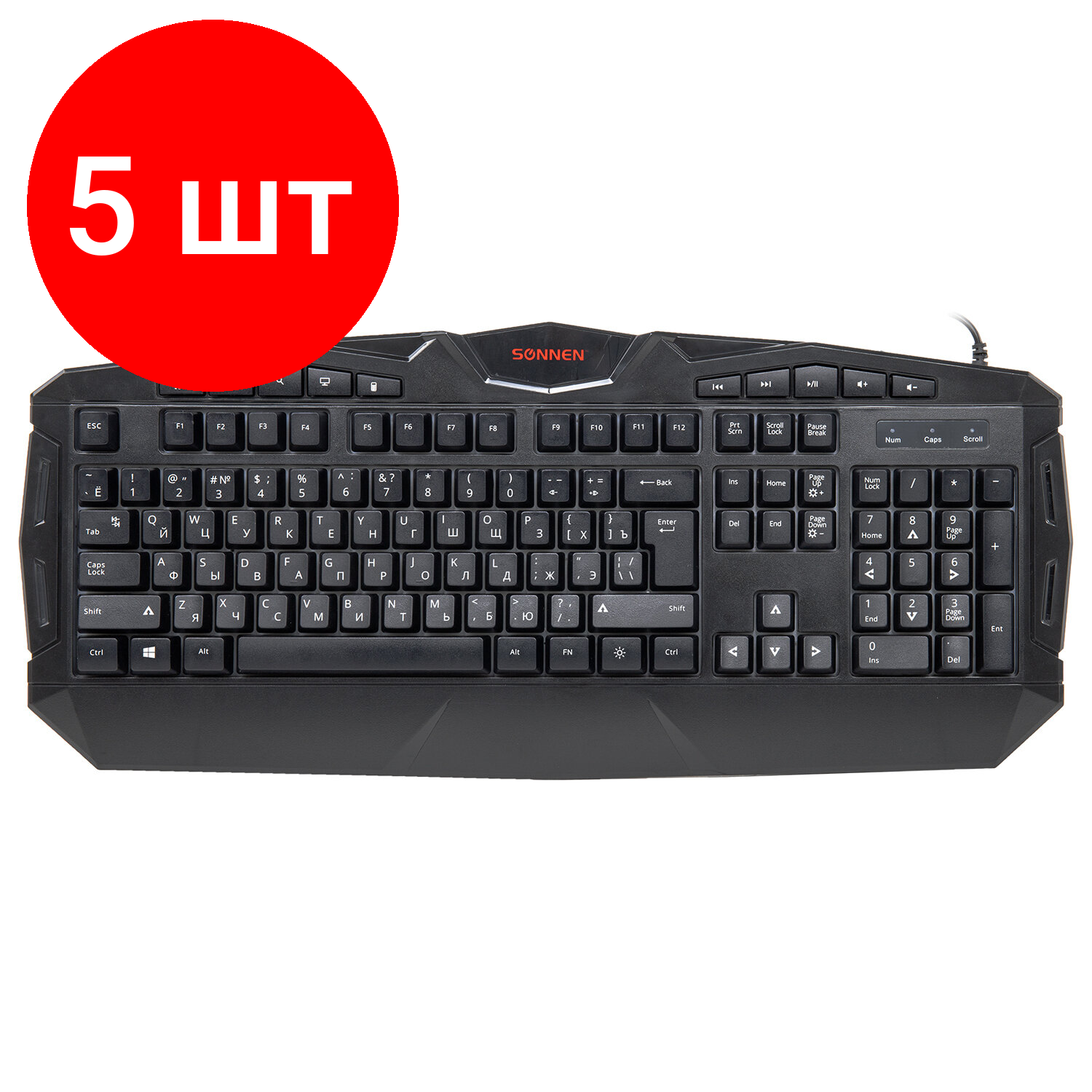 Клавиатура проводная игровая SONNEN Q9M, комплект 5 шт, USB, 104 клавиши + 10 мультимедийных, RGB подсветка, черная, 513511