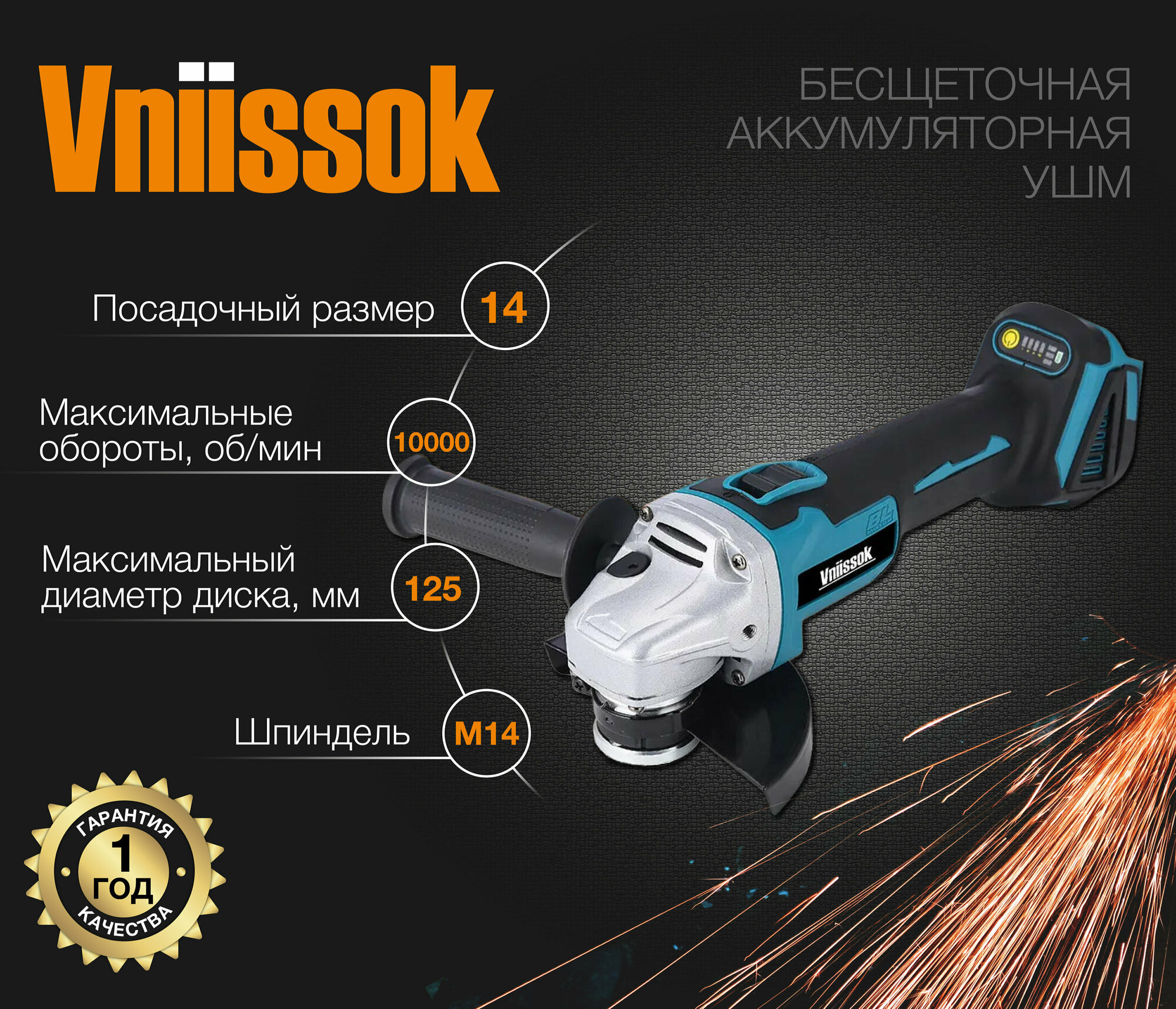 Шлифмашина угловая бесщеточная аккумуляторная (УШМ, болгарка) Vniissok 125 мм без АКБ интересное: