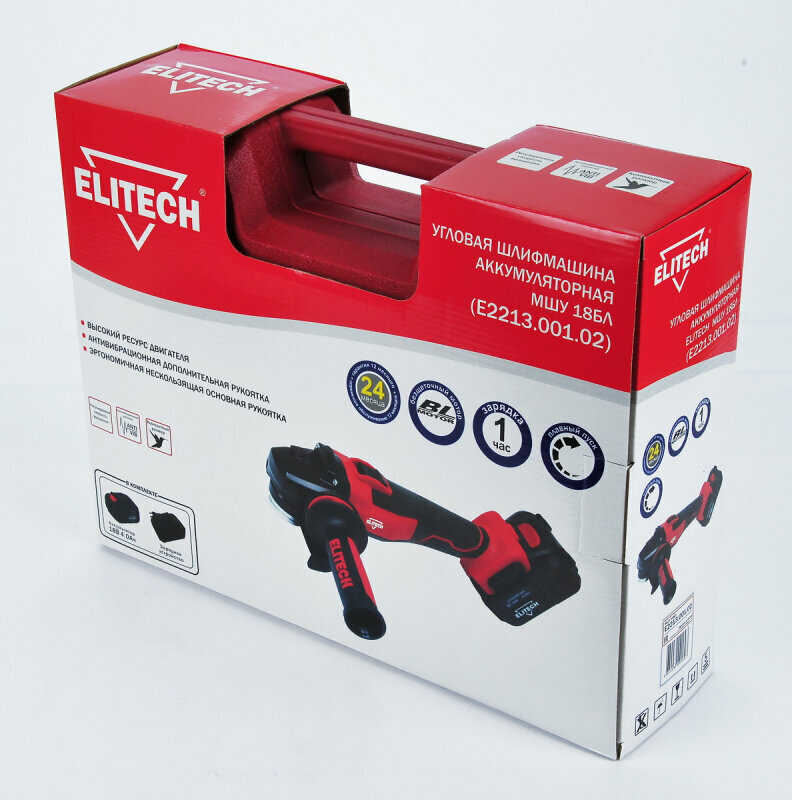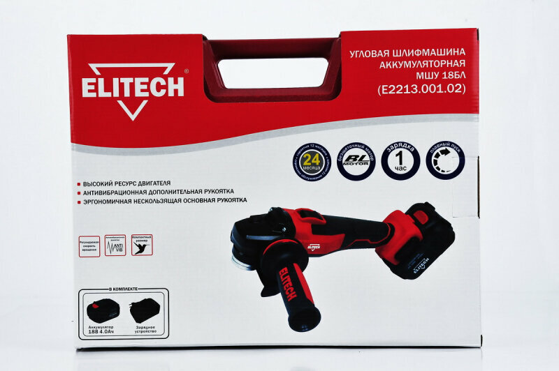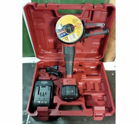 УШМ аккумуляторная Elitech МШУ 18БЛ 191602 с аккумуляторм и ЗУ
