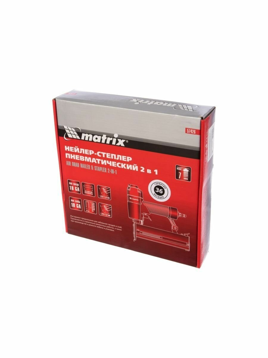 Пистолет пневматический Matrix 57426, 2 в 1, гвозди 18GA длина 10-50, скобы 18GA длина 13-40