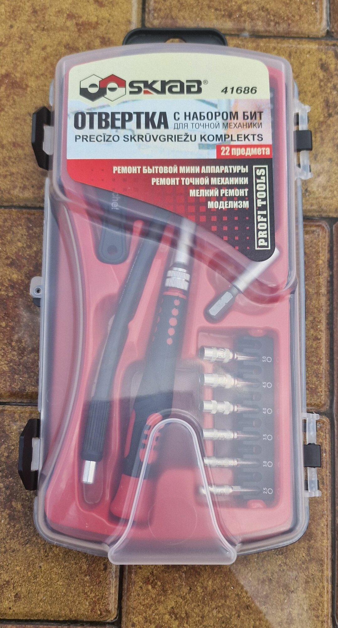 Отвертка мини с набором бит для точной механики 22 предмета SKRAB 41686 интересное:
