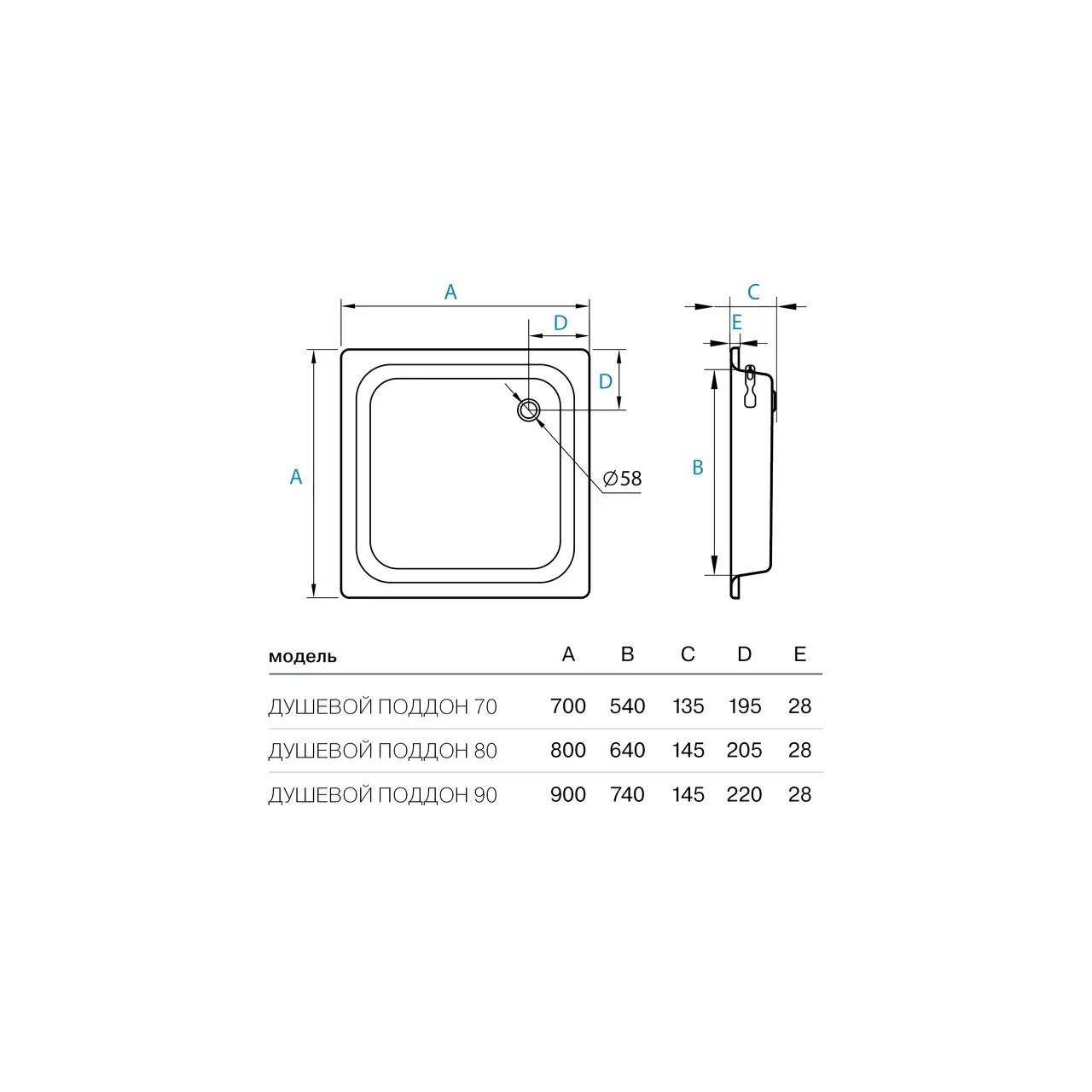 River Поддон для душа WEMOR 70/14 S квадратный 700*700*140 мм, с сифоном