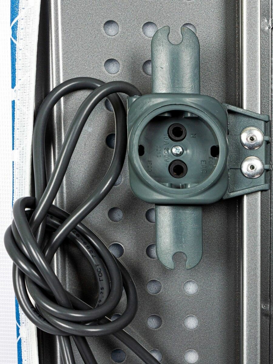 | Минусы: | Не очень удобно расположена розетка удлинителя. Если доска стоит стационарно то вопросов нет, а если её приходится постоянно убирать то неудобно. |