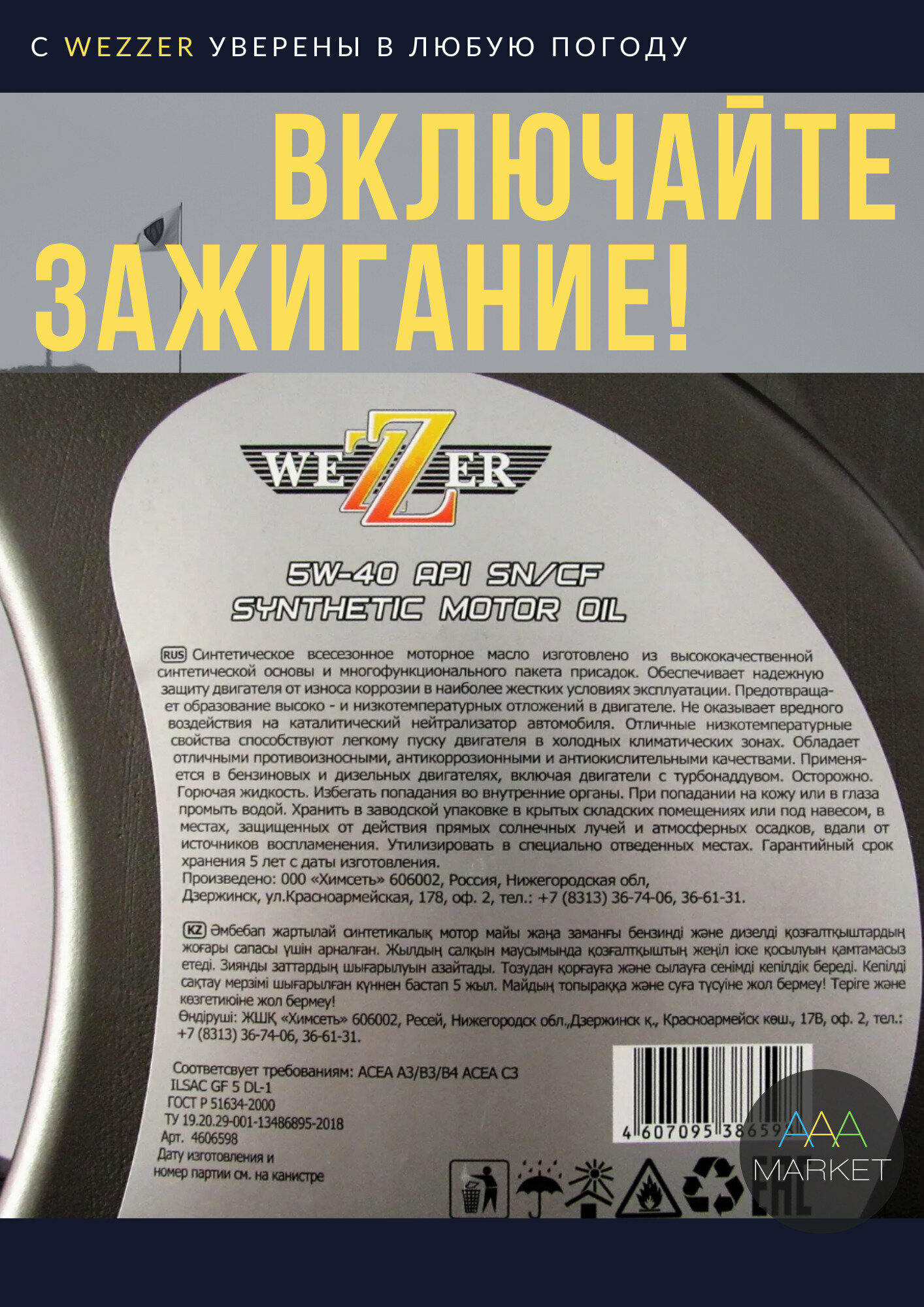 WEZZER PLATINUM SAE 5w-40 API SN/CF ACEA A3/B4/C3, ILSAC GF-5 5 л. интересное: