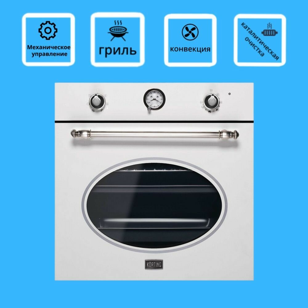 Электрический встраиваемый духовой шкаф Korting OKB 461 CRSI, ретро-стиль, объем 64 л, таймер, система охлаждения, 6 режимов нагрева, белый, 60 см