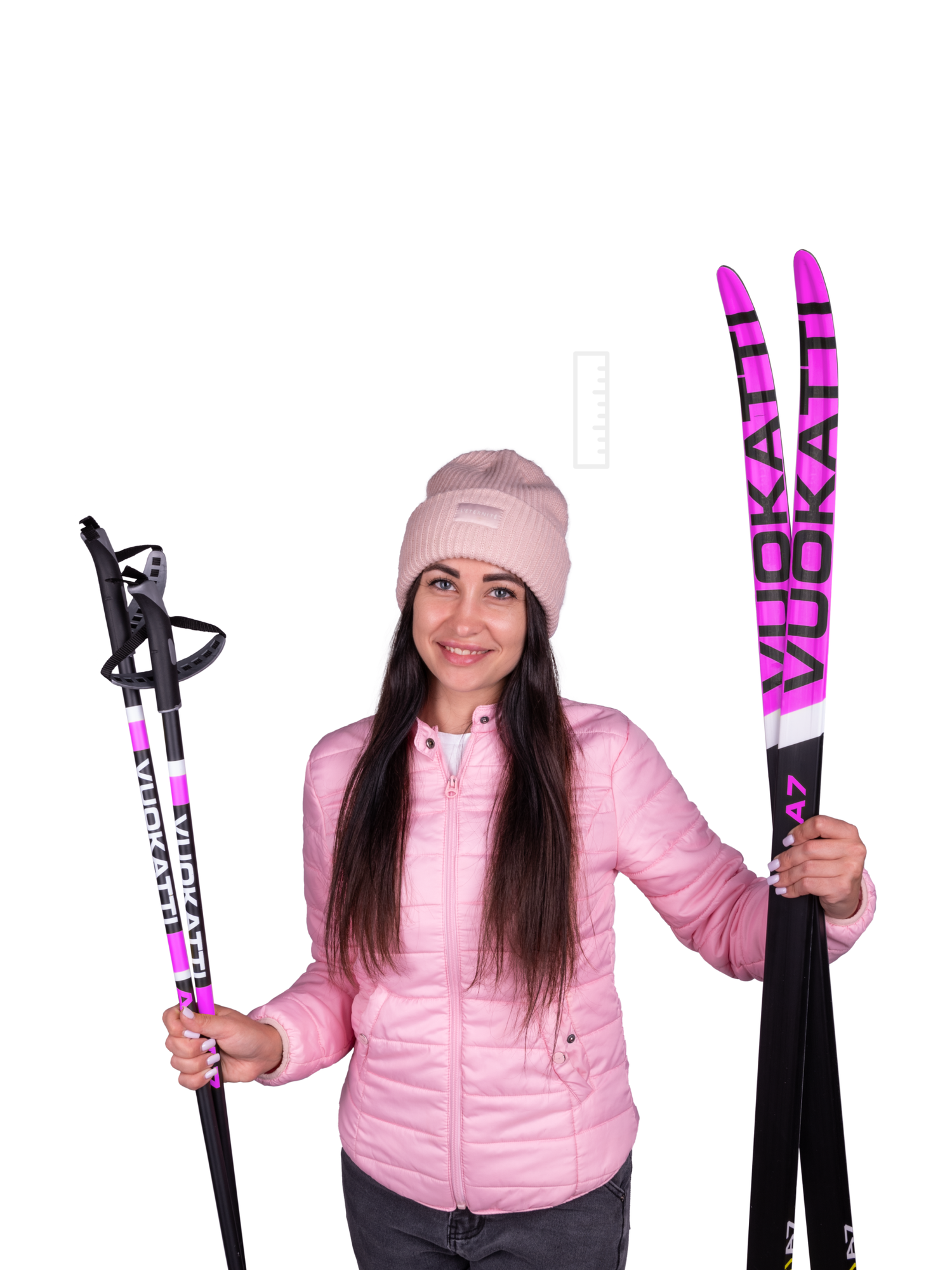 Лыжный комплект VUOKATTI / Беговые лыжи 170 см с креплением 75 мм Step цвет Black/Magenta
