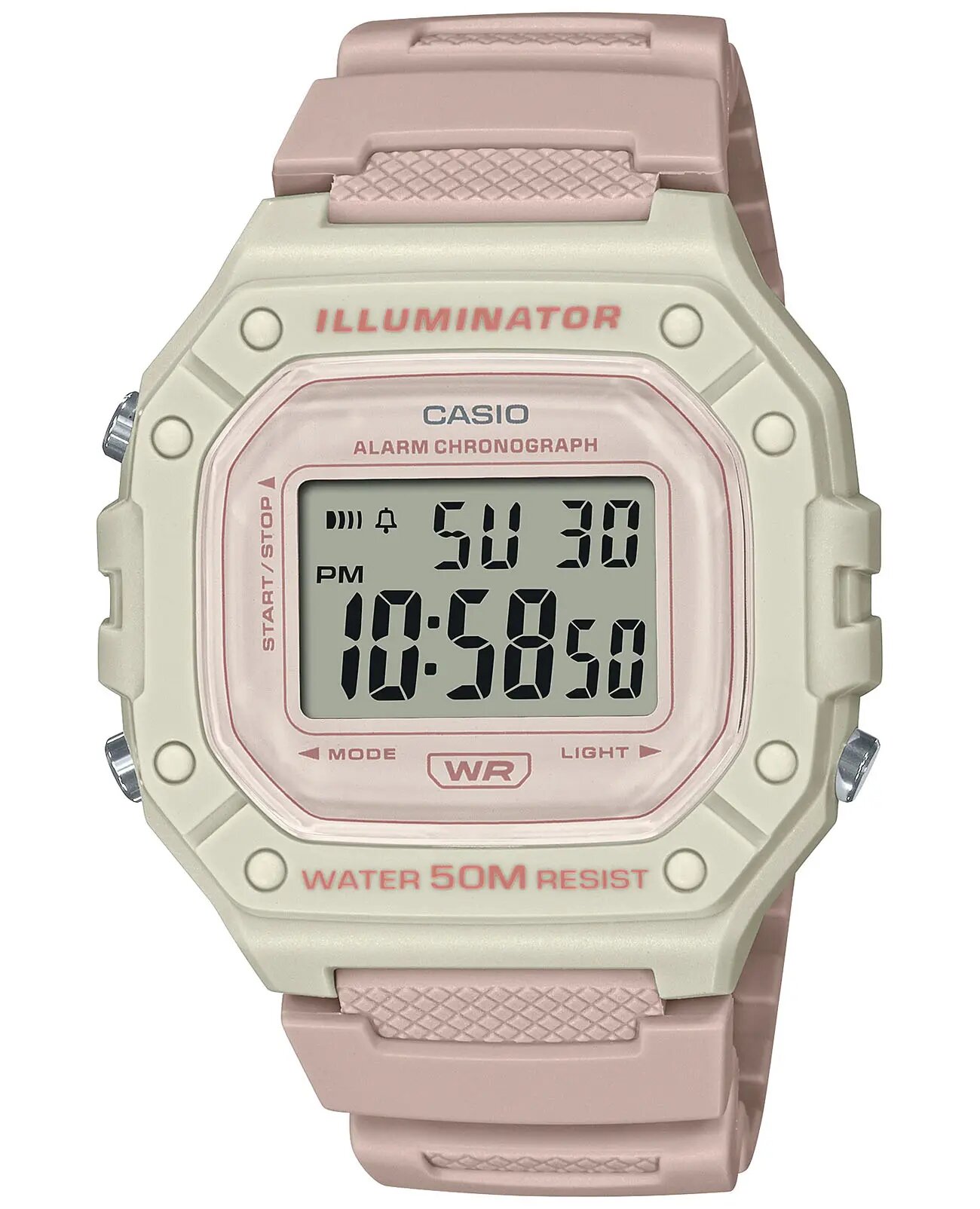 W-218HC-8A Casio наручные часы кварцевые WR50 (5 атм) мужские, женские бежевый секундомер будильник отображение дня недели, отображение числа подсветка дисплея акриловое стекло