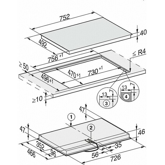 Электрическая встраиваемая варочная панель Miele KM 6542 FL, ширина 75 см, конфорок - 4, стеклокерамика