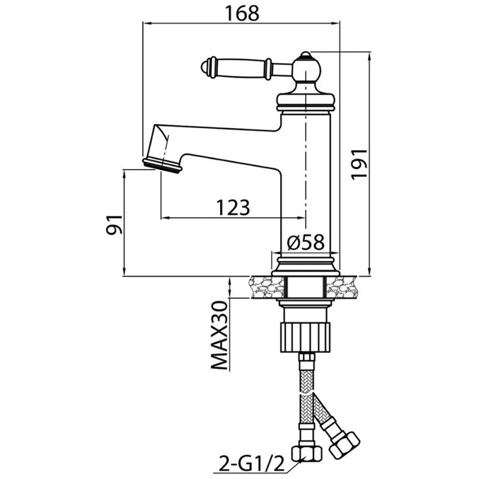 Смеситель для раковины (умывальника) в стиле ретро латунный однорычажный с гибкой подводкой в комплекте ELGHANSA 1635636, хром