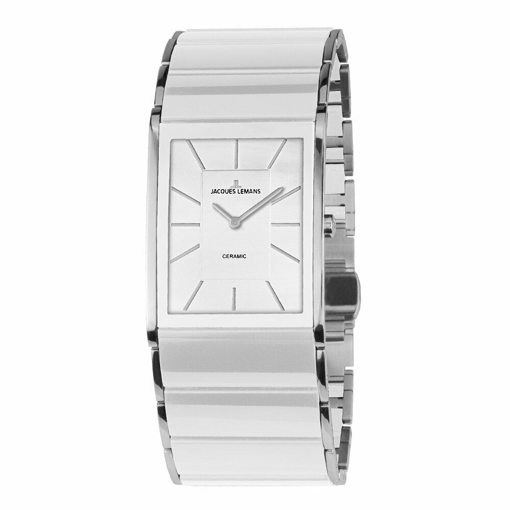 Наручные часы Jacques Lemans 1-1940B, женские прямоугольные кварцевые керамические часы Жак Леман на комбинированном браслете (сталь и керамика)