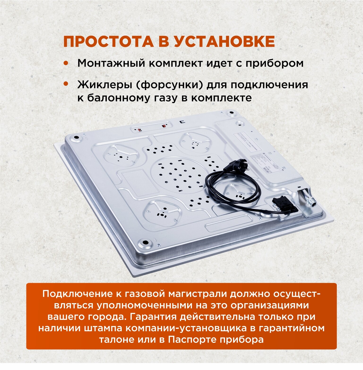 | Дополнительная информация | использование природного или сжиженного газа, штуцер для подключения баллона, жиклеры для сжиженного газа |