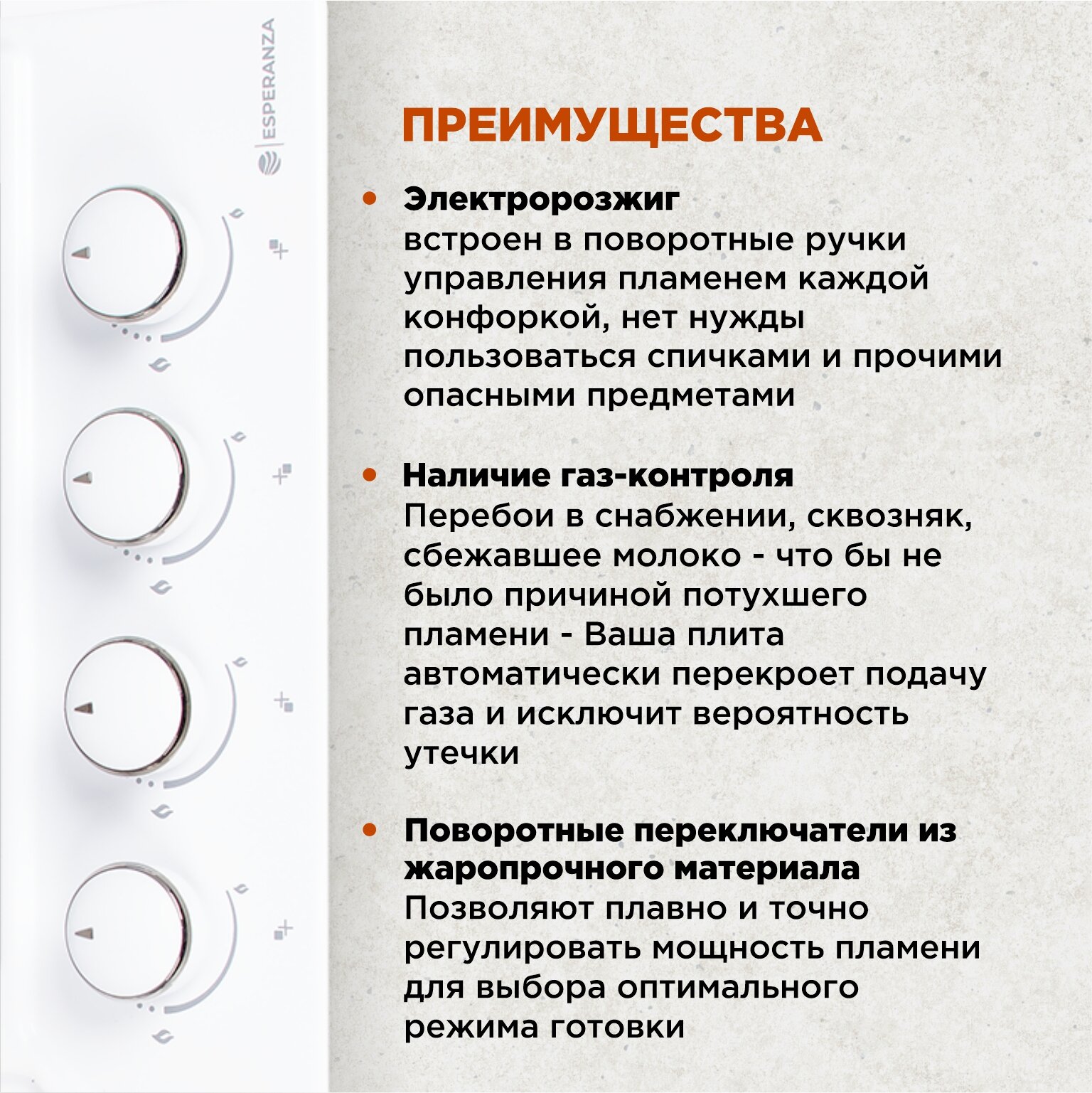 СохранитьВарочная поверхность газовая ESPERANZA HG4S1 W, газ-контроль интересное: