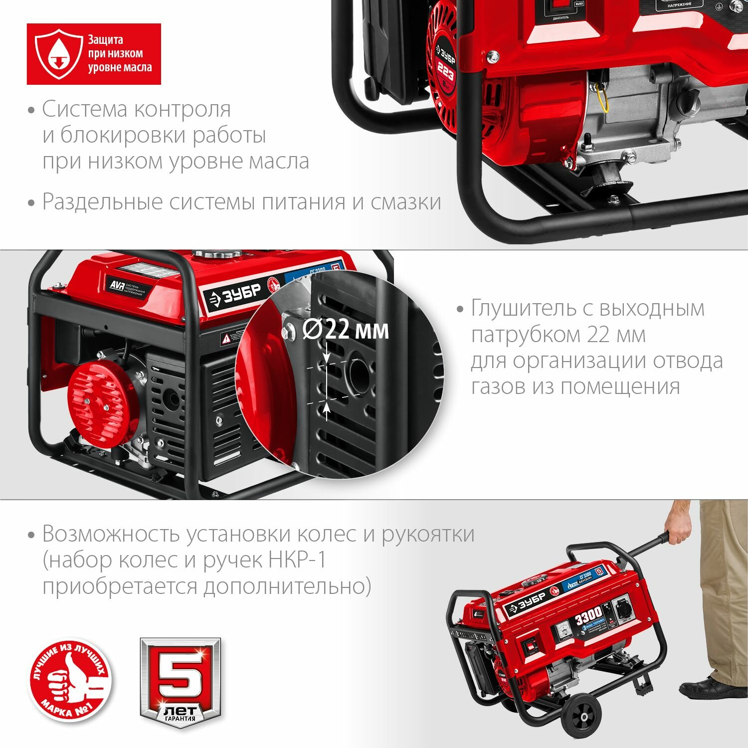 Генератор Зубр СГ-3300 (Аи-92/пропан,бутан), 3300 Вт, 12 В, 2х220 В, ручной стартер Зубр 7806379 .