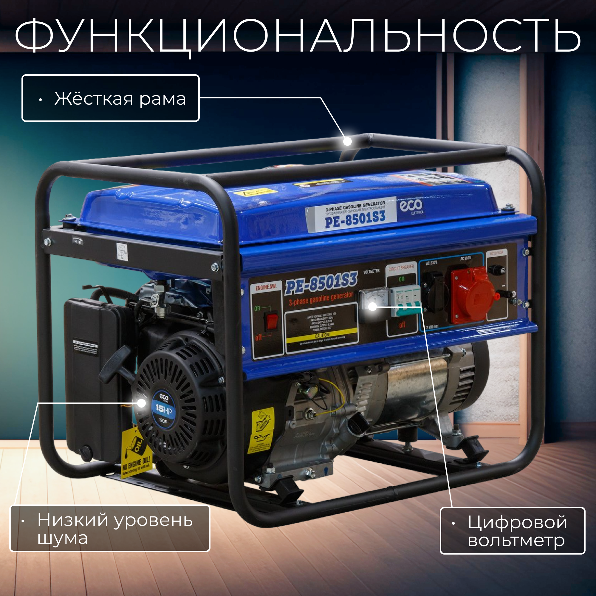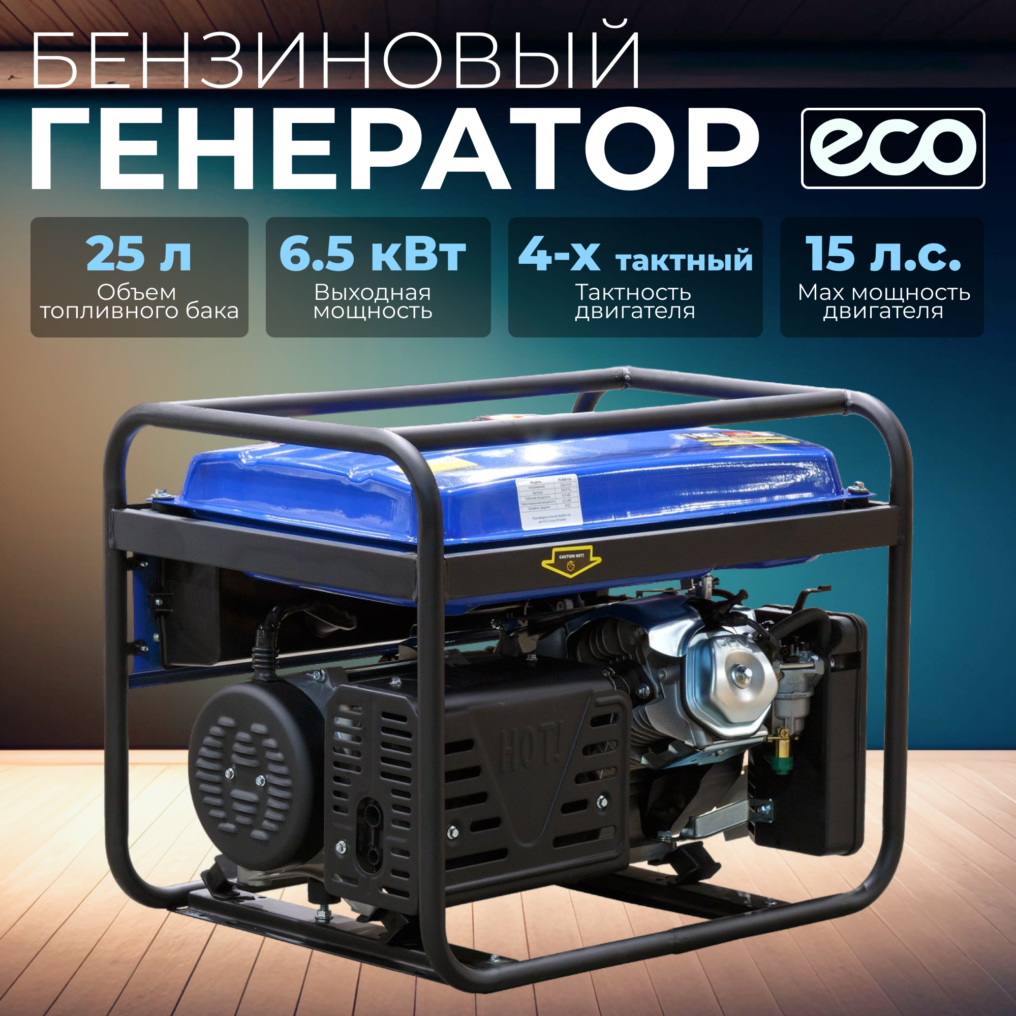 Генератор бензиновый ECO (6500 Вт, 15 л.с, 3-х фазный, (PE-8501S3))