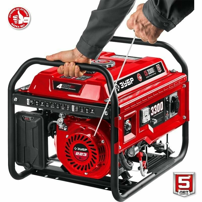 Бензиновый генератор Зубр СБ-3300Е, 220 В, 3.3кВт