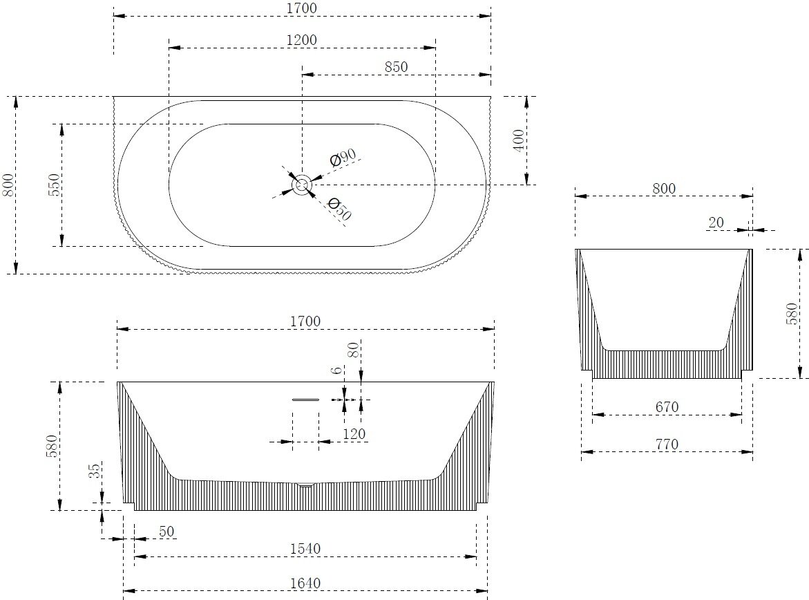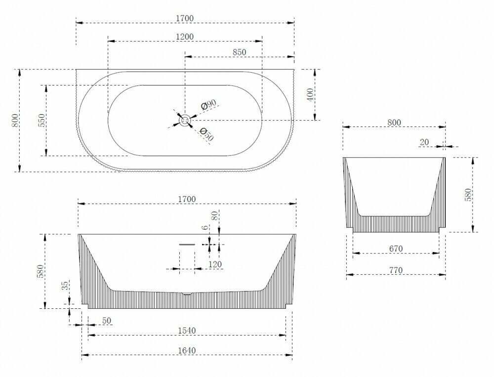 Акриловая ванна 170x80 см Abber AB9330-1.7