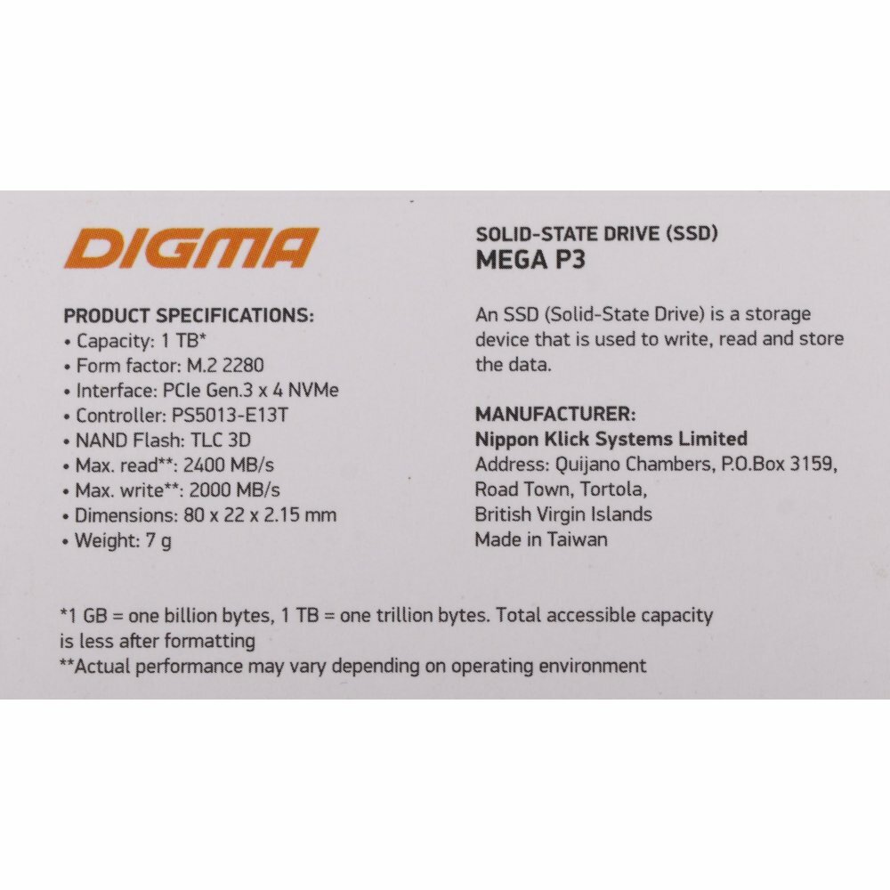 Ниже Вы можете прочитать отзывы на SSD накопитель Digma Mega P3 M.2 2280 PCI-Ex 1Tb (DGSM3001TP33T), ознакомится с подробными характеристиками, посмотреть интересные обзоры и фотографии на SSD накопитель Digma Mega P3 M.2 2280 PCI-Ex 1Tb (DGSM3001TP33T).