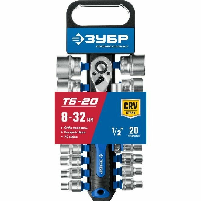 ЗУБР ТБ-20 набор торцовых головок 20 предм. Серия Профессионал.