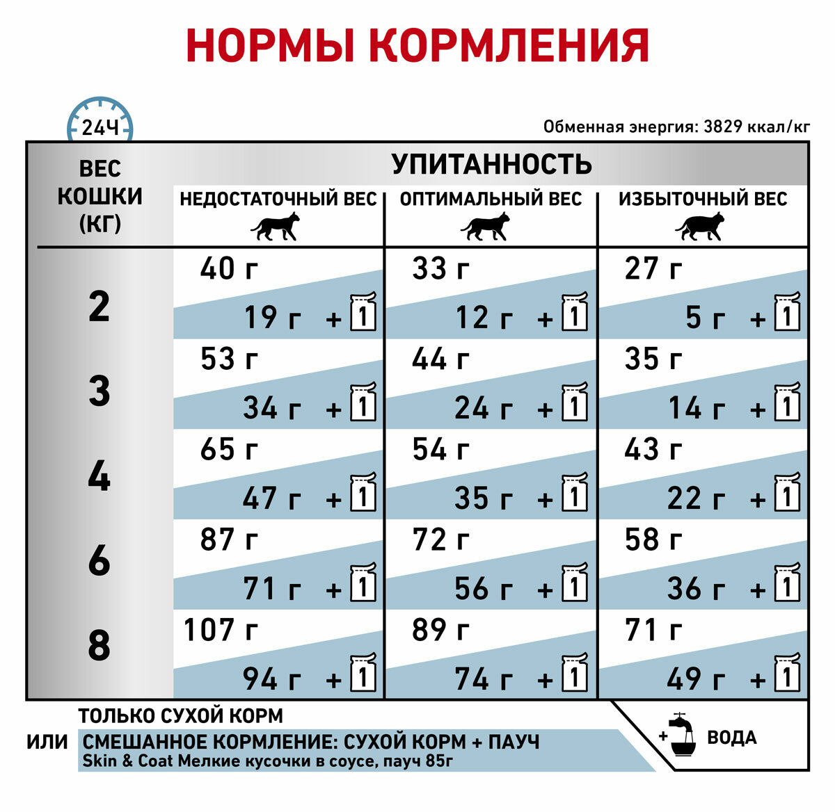 | Дозировка | Рекомендуемую суточную порцию можно разделить на 2-3 кормления (см. таблицу на упаковке или на сайте). Индивидуальные потребности в питании могут отличаться в зависимости от размера, возраста и уровня активности животного. Данные предписания носят исключительно рекомендательный характер. Для достижения оптимального состояния животного может потребоваться изменения рациона. Посоветуйтесь с вашим ветеринарным врачом по поводу целесообразности использования данного корма. при появлении первых признаков заболевания диету назначают сроком на 2 месяца, хотя видимые улучшения могут появиться уже через 2 недели. При хроническом течении заболевания животное может получать эту диету до достижения возраста 7 лет. |