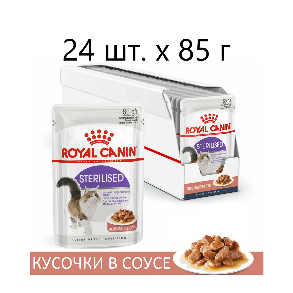Влажный корм в соусе для Royal Canin Sterilised (Стерилайзд) для стерилизованных кошек в возрасте от 1 до 7 лет, 24*0,085 кг