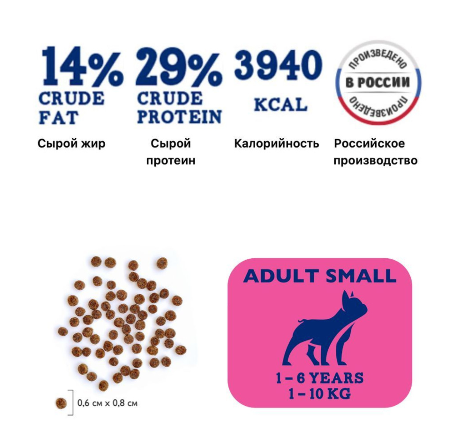 | Дополнительная информация | корм следует давать сухим или увлажненным теплой водой. У животного всегда должен быть доступ к миске со свежей водой; не содержит искусственных добавок, красителей, ароматизаторов |
