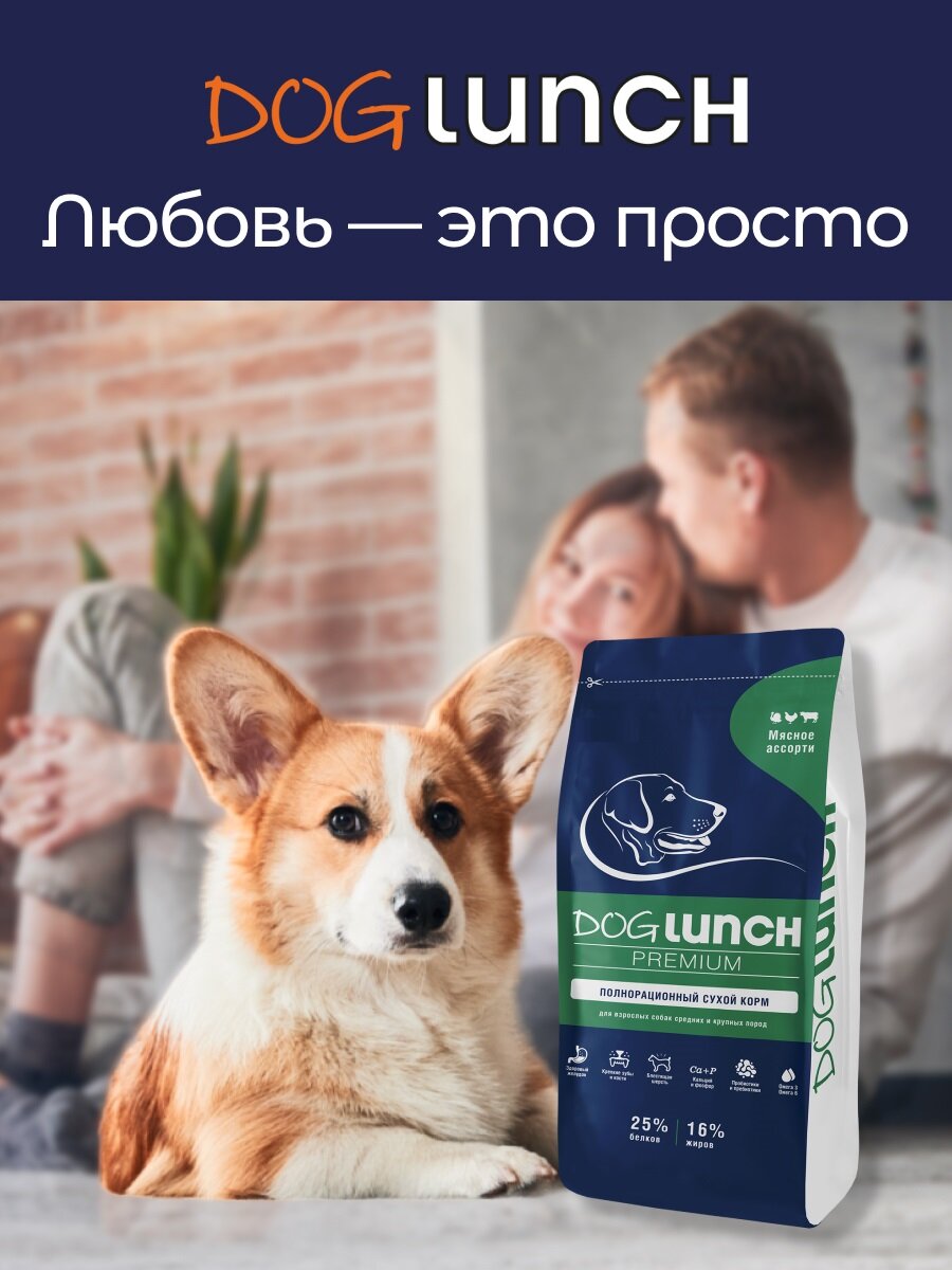 Dog Lunch Премиум сухой корм для собак средних и крупных пород Мясное ассорти - 15 кг