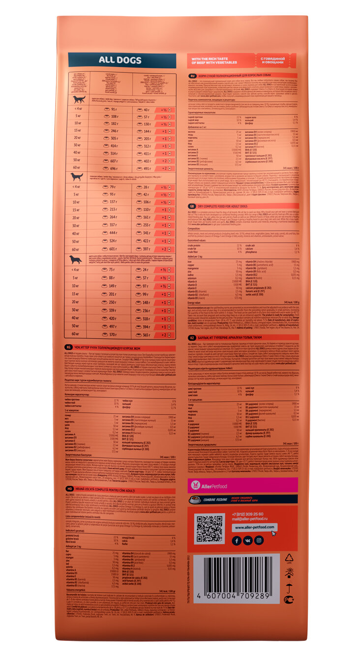 All Dogs для взрослых собак с говядиной и овощами (упаковка: 20 кг., вес: 20)