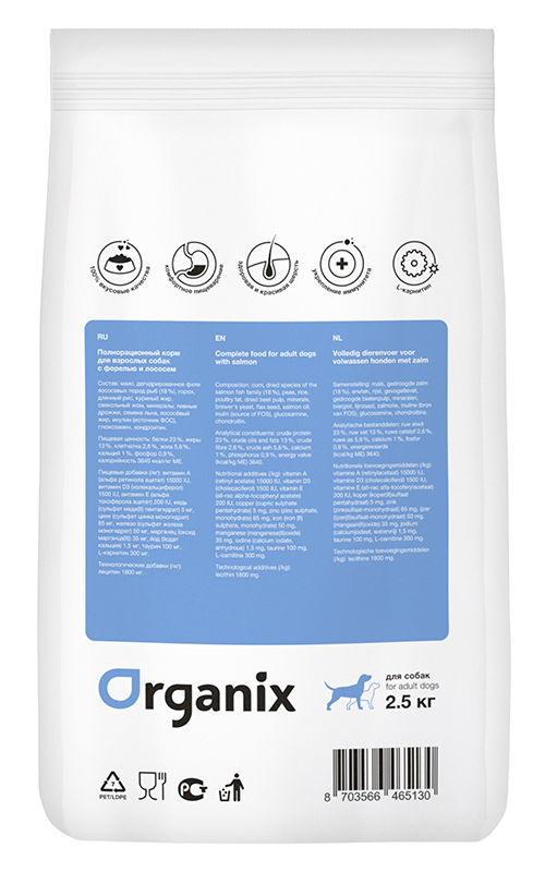 ORGANIX ADULT DOG SALMON & TROUT для взрослых собак с форелью и лососем (2,5 кг)
