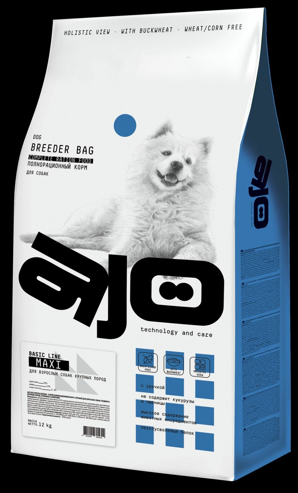 Купить AJO Dog Maxi Adult Сухой полнорационный корм с гречкой для взрослых собак крупных пород 12 кг