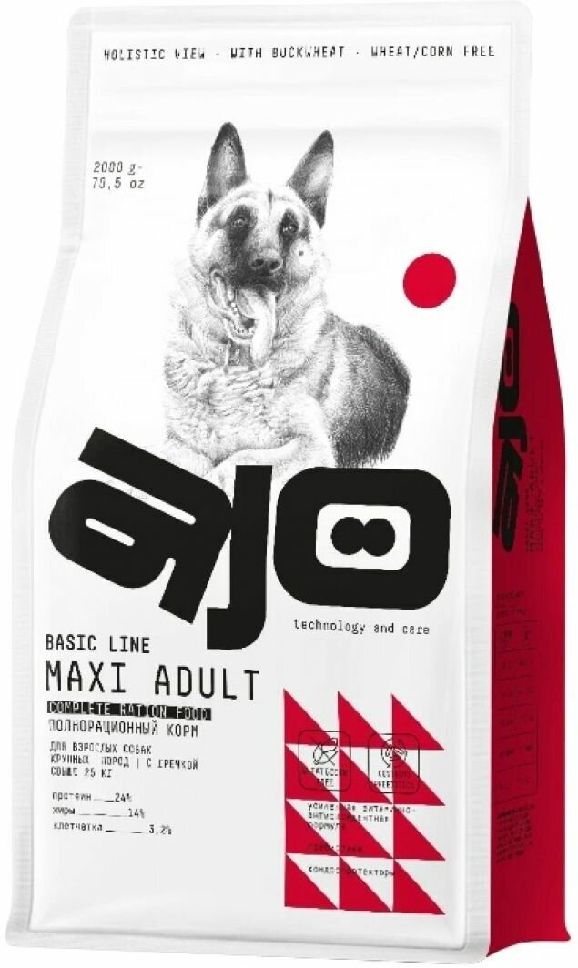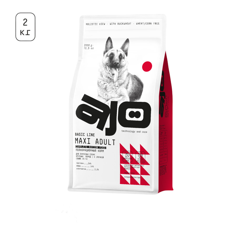 AJO Сухой корм для собак крупных пород с гречкой Maxi Adult, 2 кг