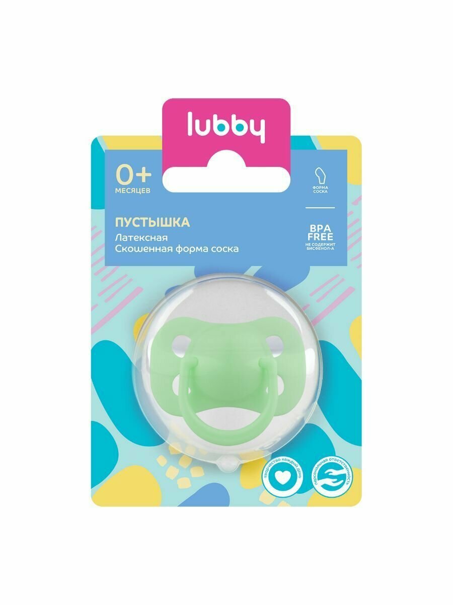 LUBBY Пустышка латекс скошенный сосок, 0+ интересное: