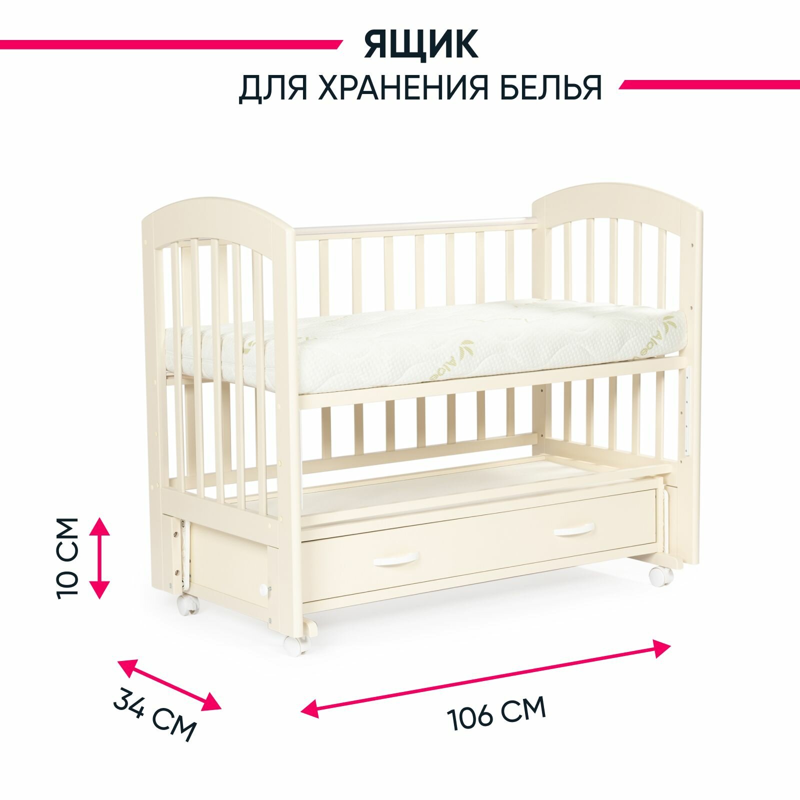 Кроватка для новорожденных BEBIZARO REGENCY VANILLA Универсальный маятник с ящиком (ШхГхВ) 105х125х67 см