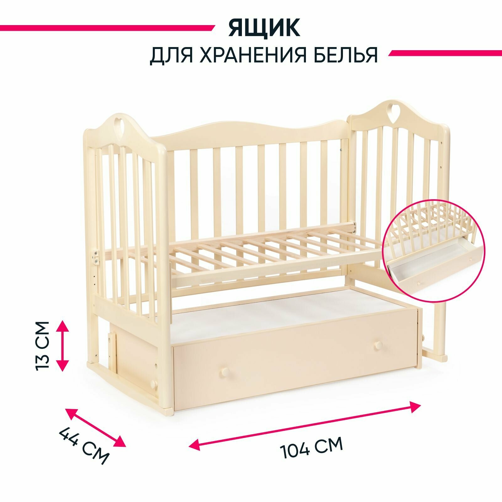 Купить Кровать BEBIZARO JAMESON "HEART" VANILLA Универсальный маятник с ящиком