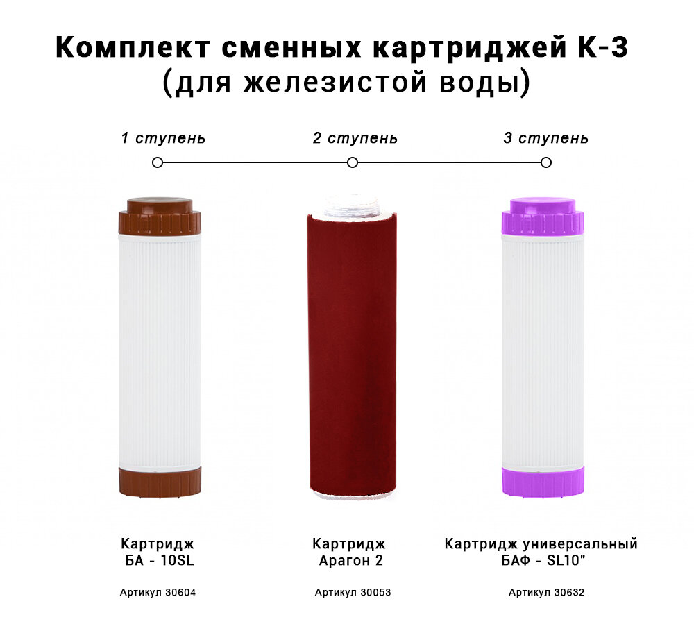 СохранитьКомплект картриджей для фильтра Гейзер Классик "К-3", сменный, для железистой воды / удаление железа / гейзер 3 / Арагон интересное: