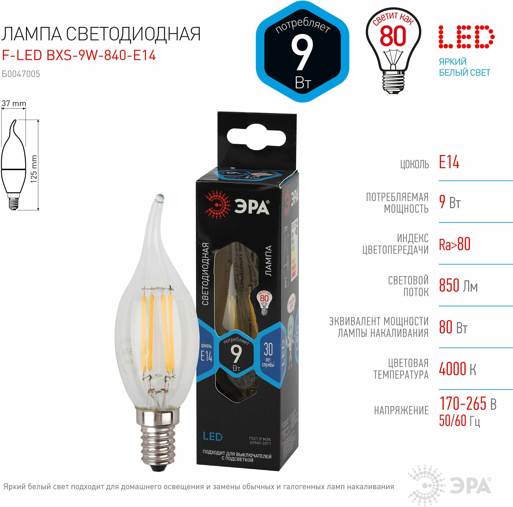 СохранитьЭра Б0047005 Лампочка светодиодная F-LED BXS-9W-840-E14 Е14 Е14 9Вт филамент свеча на ветру нейтральный белый свет интересное: