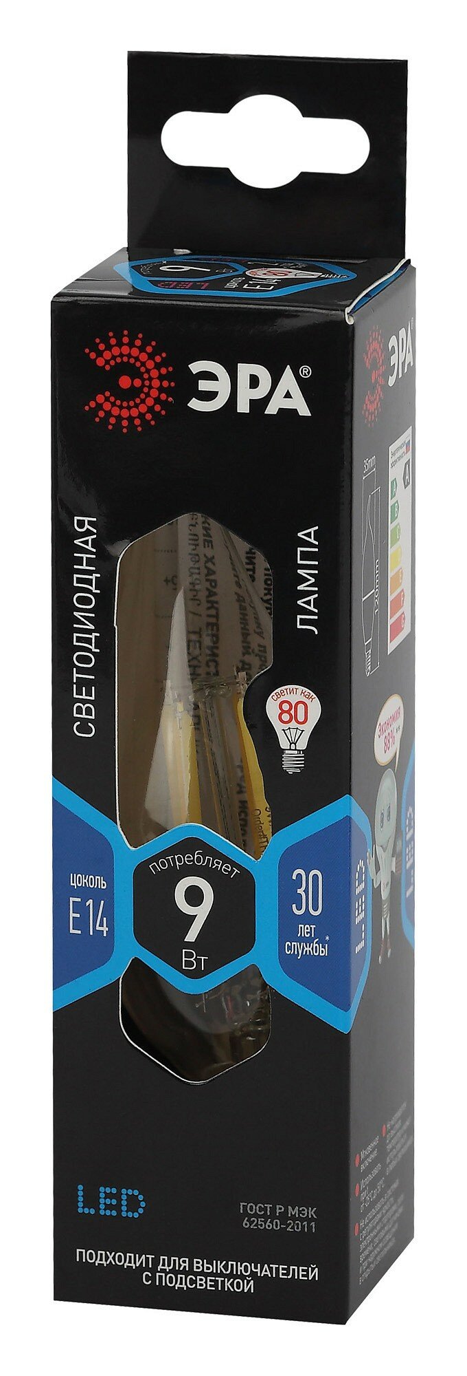 | Эквивалент лампы накаливания | 60 Вт |