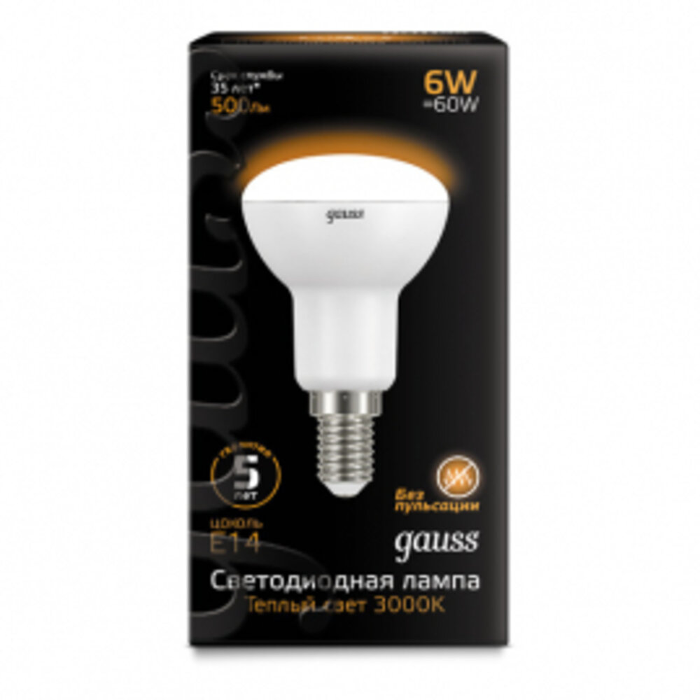 Лампа светодиодная Black R50 6Вт 3000К тепл. бел. E14 500лм 150-265В, GAUSS 106001106 (1 шт.)