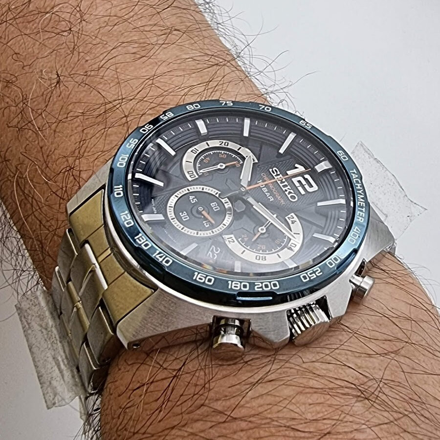 | Плюсы: | Купил в подарок племяннику на 18 лет. Запястье крупное. Первые часы такого плана. Отличная читаемость циферблата хороший дизайн, синий циферблат самый представительный. Был выбор между этими часами и Tissot sport chrono. Трудный выбор, но Tissot для взрослого мужчины, так что выбор пал на эту модель Seiko. Нужно выбирать для какого возраста эта покупка и на какое запястье. |