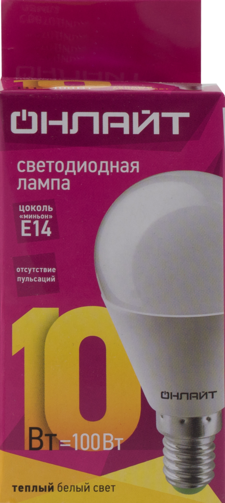 Лампа светодиодная онлайт 61965, E14, G45, 10Вт, 2700 К