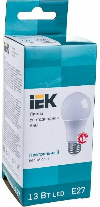 (5 шт.) Светодиодная лампочка IEK ЛОН A60 E27 13W(1170lm) 4000К 4K 110х60 ECO LLE-A60-13-230-40-E27 Нейтральный белый. Цоколь E27
