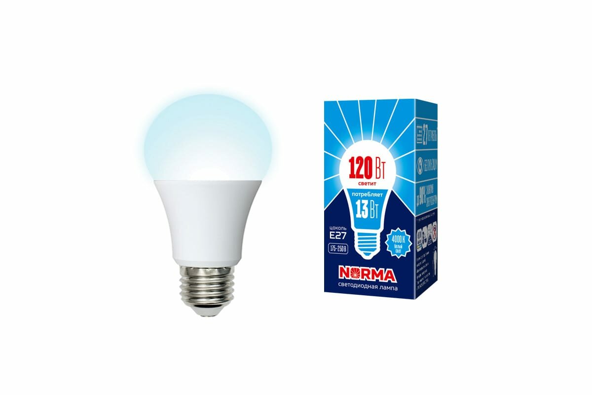 Volpe LED-A60-13W/NW/E27/FR/NR Лампа светодиодная. Форма "A", матовая. Серия Norma. Белый свет (4000K). Картон. ТМ Volpe