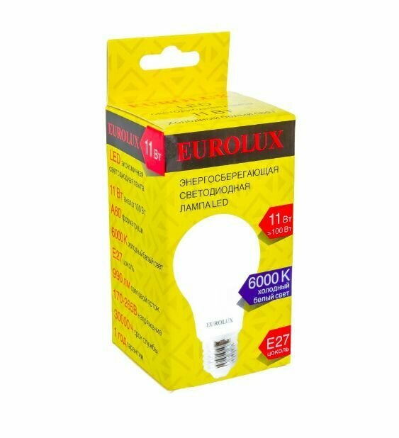 Лампа светодиодная 11W LL-E-A60-11W-230-6K-E27 груша холодный (10) EUROLUX интересное: