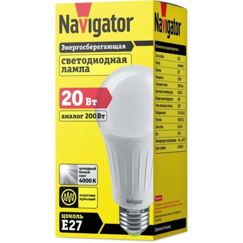 Лампа светодиодная Navigator 61 282 NLL-A70, 20 Вт, груша Е27, дневного света 4000К, 1 шт.