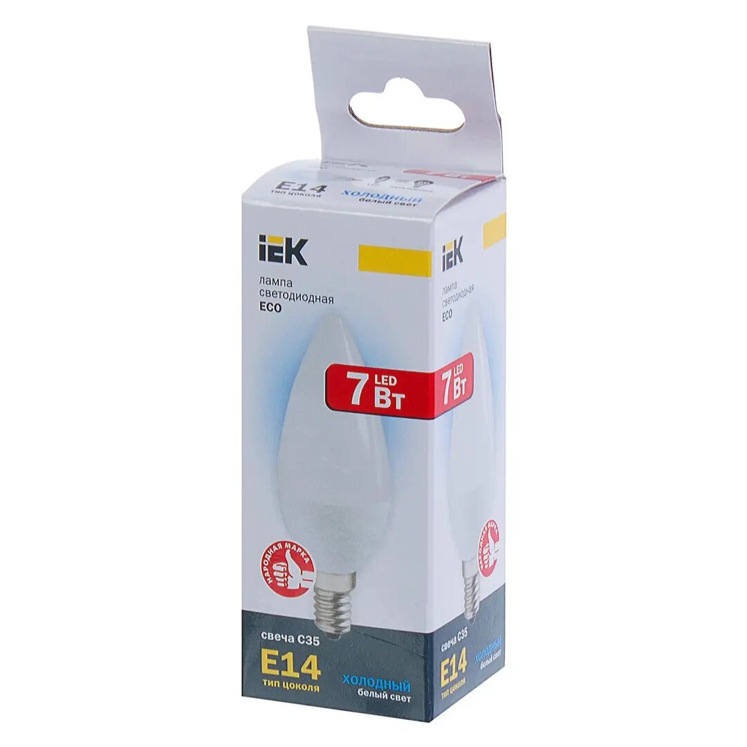 Купить Лампа светодиодная E14, 7 Вт, 60 Вт, 230 В, свеча, 4000 К, свет нейтрально-белый, IEK, C35, LED