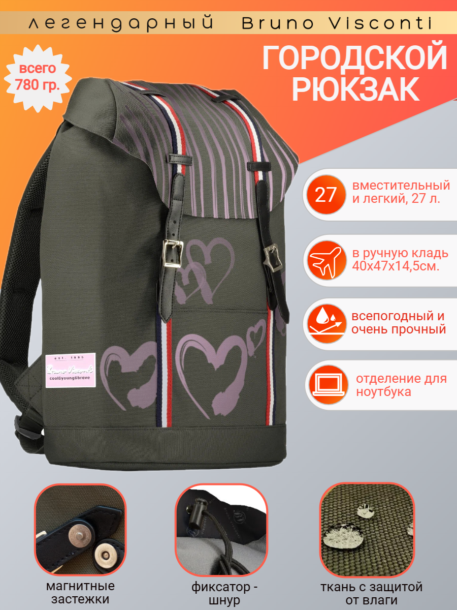 Купить Рюкзак Bruno Visconti городской темно-серый "нежные сердца", Арт. 12-011-005/06